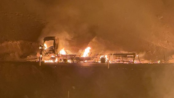 Lead: Un accidente de tránsito dejó huella en la curva de la Caleta, provincia de Caravelí, región de Arequipa, debido a que se produjo un choque entre un camión cisterna y automóvil pesado. Ante ello, la inminente explosión provocó un gran incendio que cerraría el kilómetro 614 de la Panamericana Sur.