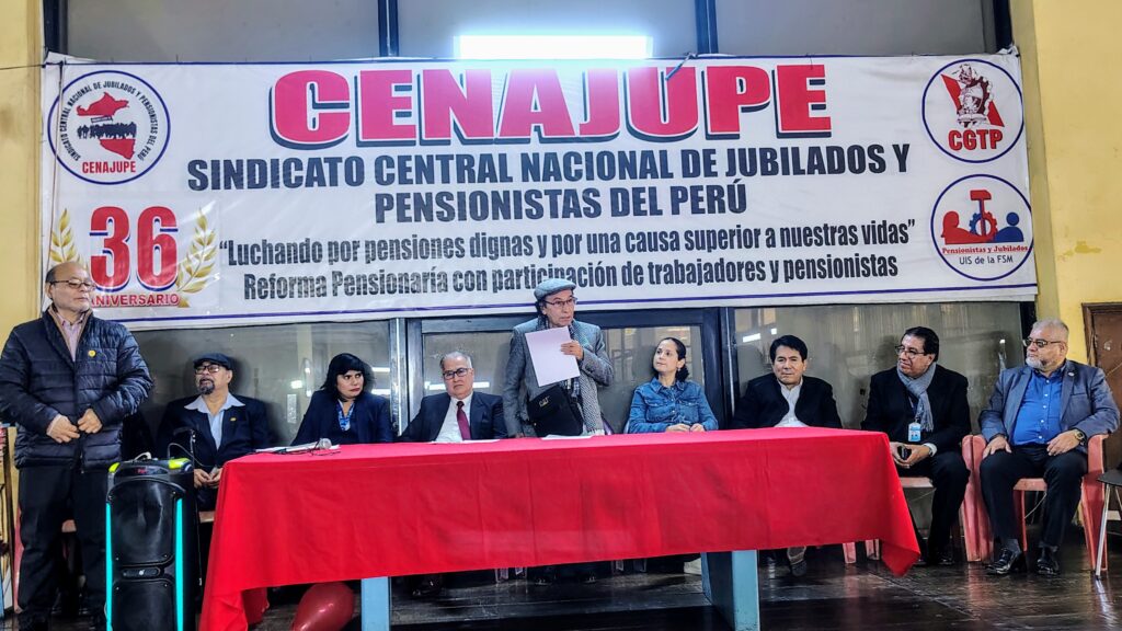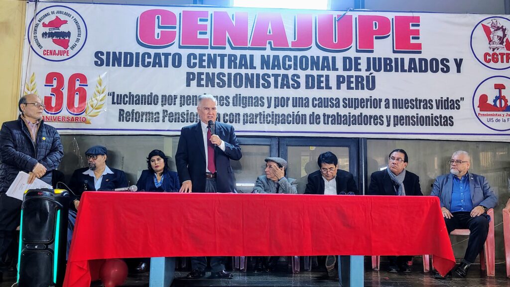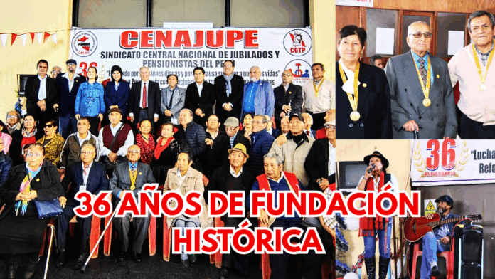 El pasado jueves 26 de junio a las 11:00 a.m., en la Av. Arenales 1302, Jesús María, se llevó a cabo la ceremonia por el 36º aniversario de la fundación del Sindicato Central Nacional de Jubilados y Pensionistas del Perú (CENAJUPE). Este evento reunió a destacadas personalidades del ámbito sindical, político y social, quienes reafirmaron su compromiso con la defensa de los derechos y la dignidad de los jubilados y pensionistas peruanos.