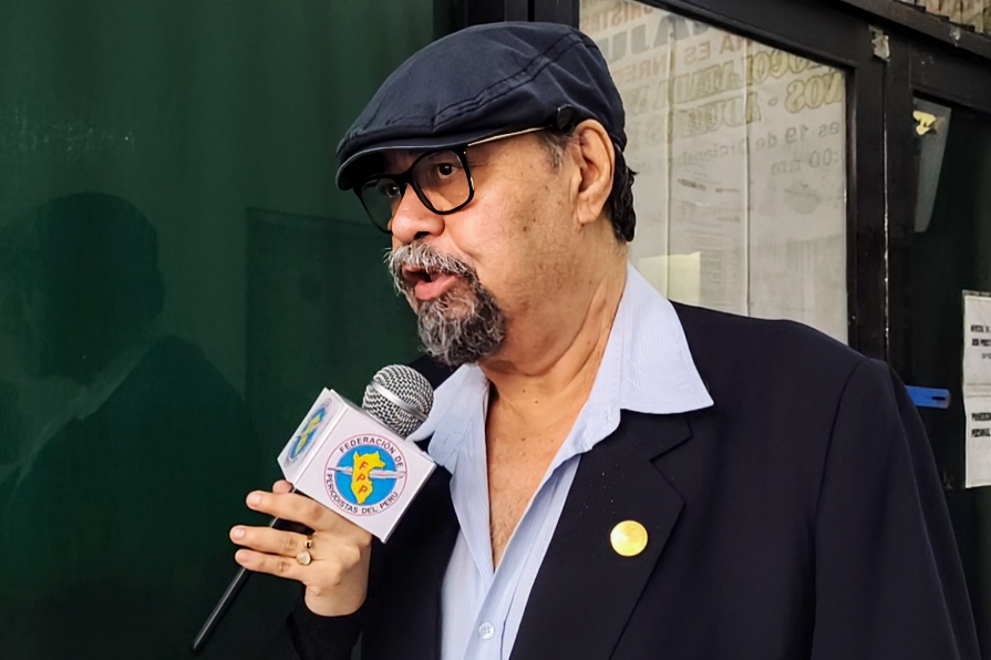 El Dr. Ángel Sánchez Dueñas, presidente de la Federación de Periodistas del Perú, destacando la unidad sindical en defensa de los pensionistas.