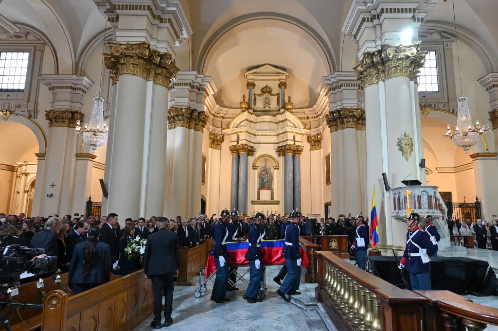 Miles de colombianos participaron en las exequias del fallecido aspirante presidencial colombiano, Miguel Uribe Turbay, en la Catedral Primada de Bogotá, capital de Colombia, acto encabezado por el cardenal Luis José Rueda.