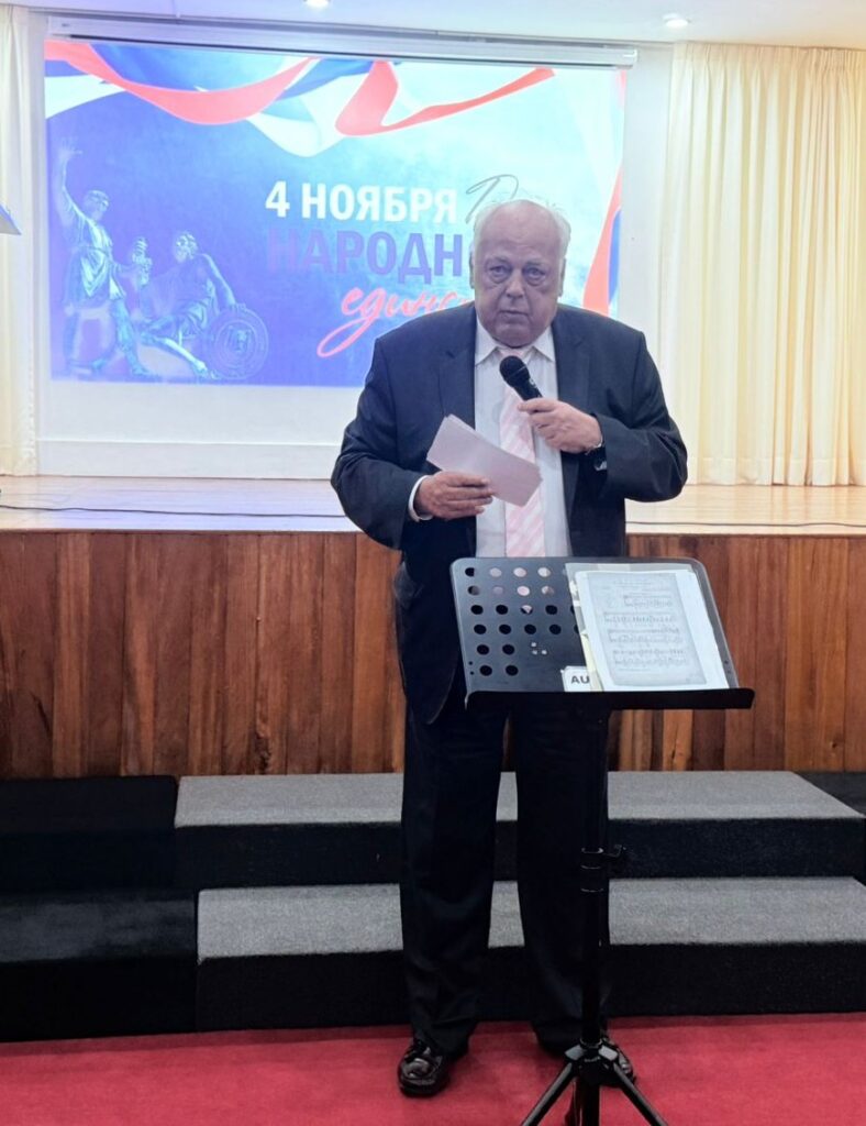 El embajador Igor Románchenko ofreció un mensaje vibrante y profundo, recordando que la unidad nacional es “la fuerza de nuestra fe, de nuestra verdad y de nuestra historia”. En un contexto global desafiante, reafirmó que Rusia encuentra su fortaleza en la espiritualidad, la tradición y el talento de su pueblo.