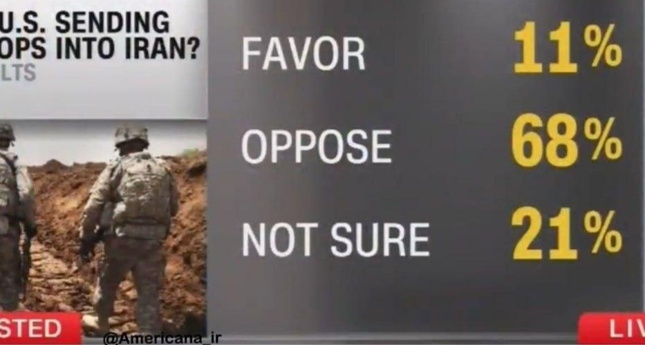 Mientras, la más reciente encuesta de CNN indica que el 68% de los estadounidenses se oponen al envío de tropas terrestres a Irán.