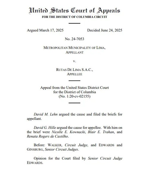 La Corte de Apelaciones del Distrito de Columbia desestimó la apelación de la comuna limeña y ratificó dos laudos arbitrales internacionales a favor del consorcio vial.