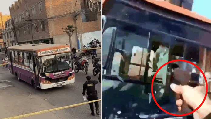 Un nuevo ataque extorsivo se ha registrado el último domingo en el distrito de San Martin de Porres. Dos sujetos a bordo de una motocicleta atacaron de diez balazos al un bus de transporte público donde milagrosamente el conductor del vehículo logró salir ileso .