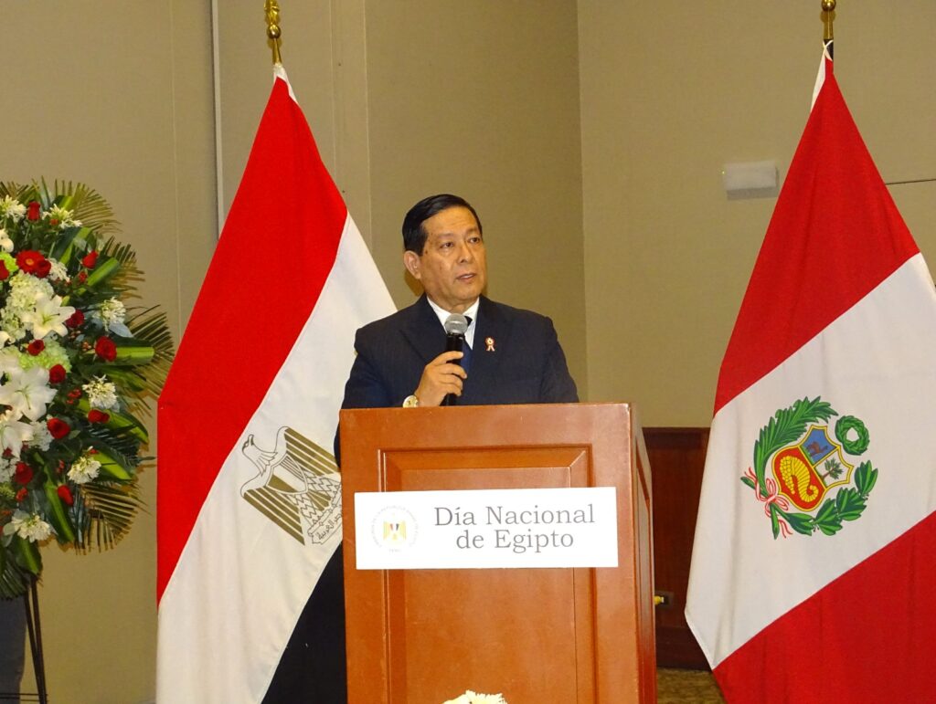 In a gathering marked by elegance, symbolism and fraternity, the Embassy of the Arab Republic of Egypt in Peru celebrated the 73rd anniversary of its National Day with a moving reception at the Swissotel. The event also commemorated the 62nd anniversary of the establishment of diplomatic relations between Egypt and Peru, bringing together high-level Peruvian authorities, members of the diplomatic corps, academic and cultural representatives, and members of the Egyptian community residing in the country.