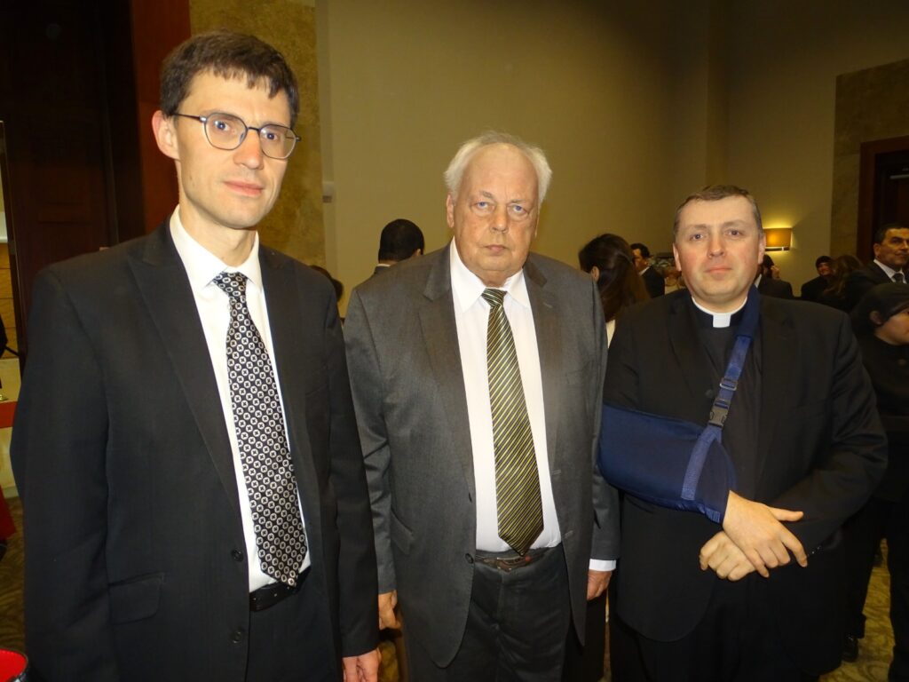 Artem Lovenko y embajador Igor Romanchenko  de la Federación Rusa con el monseñor Giuseppe Quirighetti de la Nunciatura Apostólica
