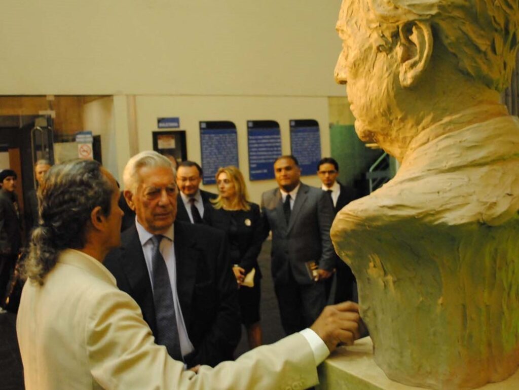 Ese día, el renombrado literato arequipeño Mario Vargas Llosa tomó la palabra, manifestando ante los asistentes, medio en broma, medio en serio, que “estas cosas suelen ocurrir cuando las personas están muertas”; y, segundos antes, afirmó que “ver representada la propia imagen tiene algo de inquietante, parece como la profecía de una petrificación espero que no inminente”. Al año siguiente, el 14 de abril de 2014, en Arequipa se inauguró la Biblioteca Regional Mario Vargas Llosa, para la cual el premio Nobel donó su inmensa biblioteca personal. Funciona en el centro histórico de la ciudad, en la calle San Francisco N°306. En el 2010, antes de conocerse al ganador del Nobel de Literatura de ese año, en la Casa de la Literatura Peruana empezó a funcionar la biblioteca Mario Vargas Llosa en homenaje a su trayectoria de escritor. Allí, en el 2018, se inauguró una nueva sala por los investigadores bien aprovechada, como todo en la vida, en cada momento que sea posible.