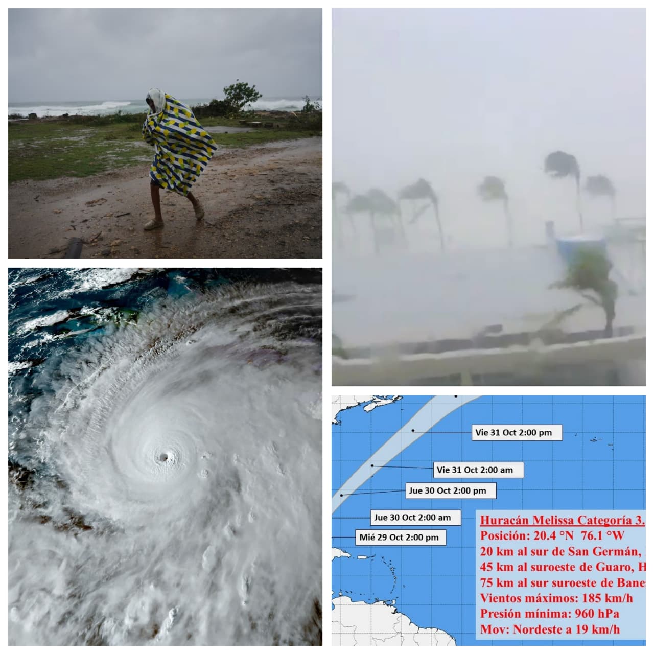 Previamente, Melissa causó severos daños en Jamaica al tocar tierra como huracán de categoría 5, con vientos de casi 300 km/h. Además de graves inundaciones, se reportaron daños extensos en viviendas, hospitales y escuelas del suroeste de Jamaica. El primer ministro del país insular, Andrew Holness, declaró el país zona de desastre el martes.