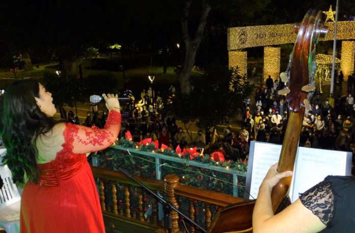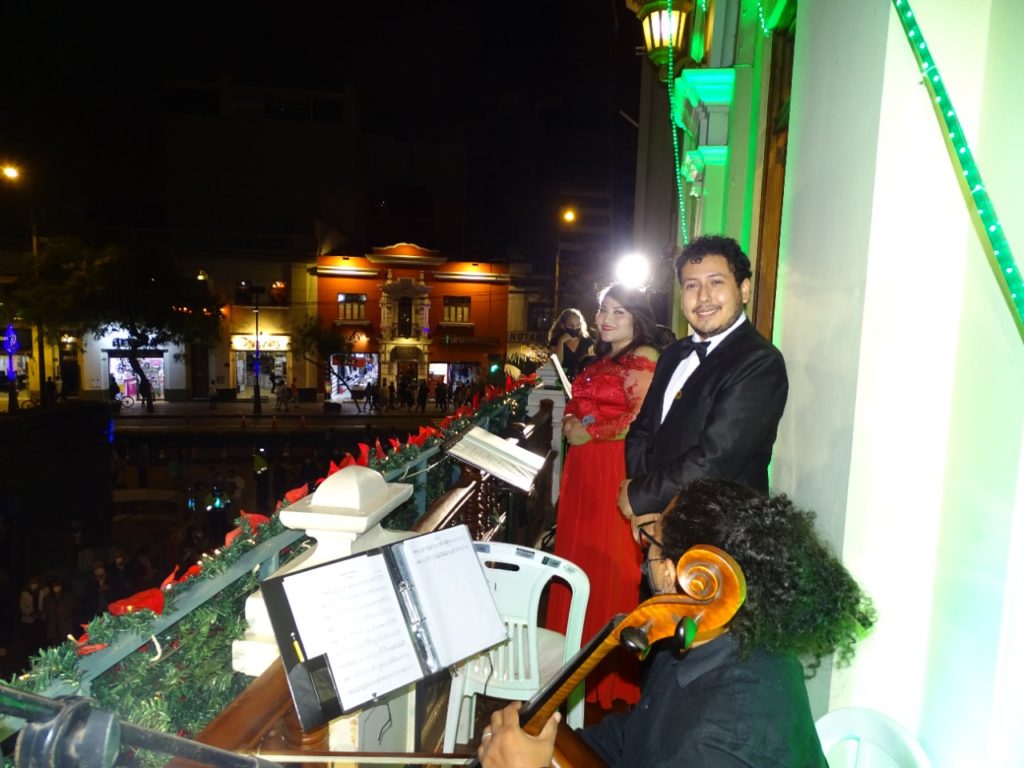 Con las voces majestuosas de la soprano Luz Merlina Honorio y del tenor Marco Hurtado, el conjunto interpretó las más lindas canciones navideñas como Tu Scendi dalle stelle, Gesú Bambino e italianas, de Vivaldi, Bocherini y Monti, Donicetti, Verdi o Puccini, rapsodias, así como Cinema Paradiso, Por ti volare, La Traviata, Parla piú piano, entre muchas otras.