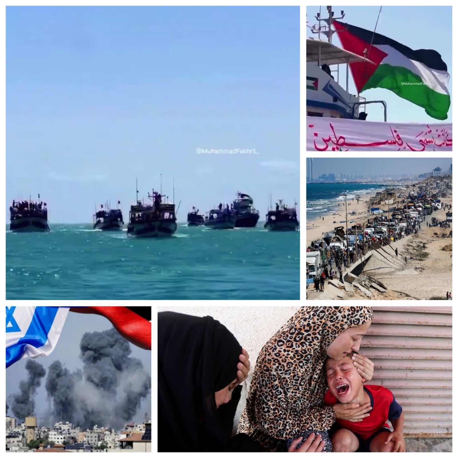 La Flotilla, compuesta por medio centenar de barcos y más de 500 activistas civiles de 40 países, subrayó el carácter pacífico y no violento de su misión, que tiene como objetivo romper el bloqueo por mar, aire y tierra impuesto a Gaza, y entregar ayuda humanitaria a la población civil palestina cercada desde 2007.