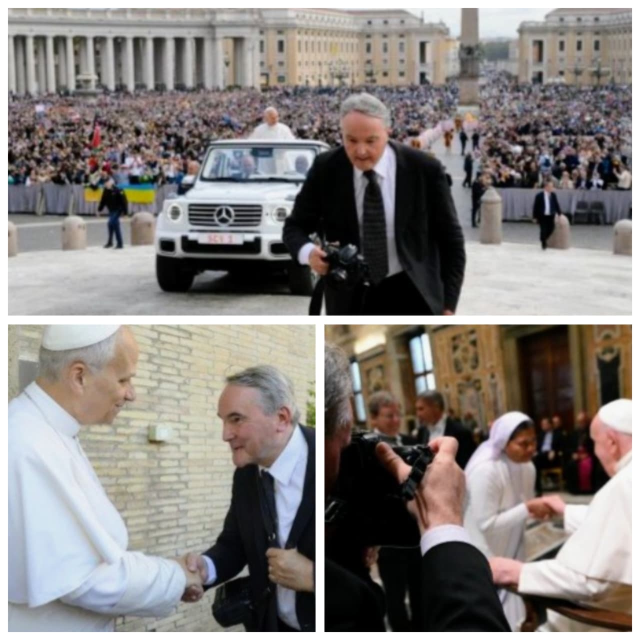 El prefecto del Dicasterio para la Comunicación, Paolo Ruffini, le agradeció por su labor desde el Servicio Fotográfico de L’Osservatore Romano -hoy Vatican Media-, que le permitió acompañar a los pontífices como Pablo VI, Juan Pablo II, Benedicto XVI, Francisco y el actual León XIV.