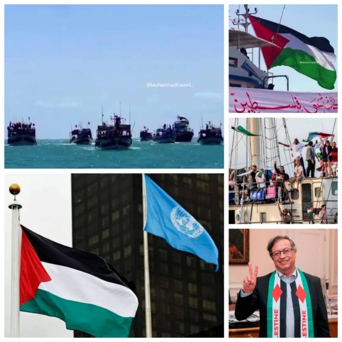 España e Italia, por su parte, anunciaron el envío de buque militares de acción rápida para escoltar a la GFS, con medio centenar de embarcaciones y más de 500 activistas de 44 países, incluidos de países de América Latina, que partió de Barcelona a fines de agosto, con el reto de quebrar el bloqueo israelí, vigente desde el 2007.