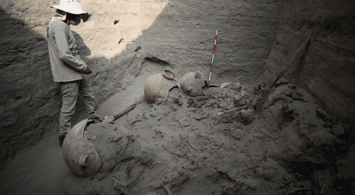 «Bajo 7 metros de profundidad, hemos encontrado la tumba de un personaje de élite de más de 1.000 años de antigüedad de la cultura preínca Chancay», dijo el arqueólogo Pieter Van Dalen, líder de la expedición.