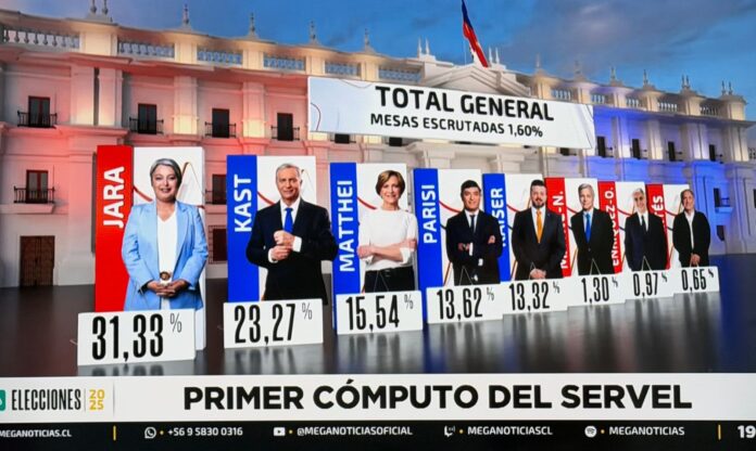 La exministra del Trabajo en el saliente Gobierno de Gabriel Boric y militante del Partido Comunista, encabeza las presidenciales, con 31,33%,, según los datos preliminares de la votación escrutada en el país y también lidera en el conteo de votos desde el exterior con amplia ventaja sobre sus más cercanos competidores.