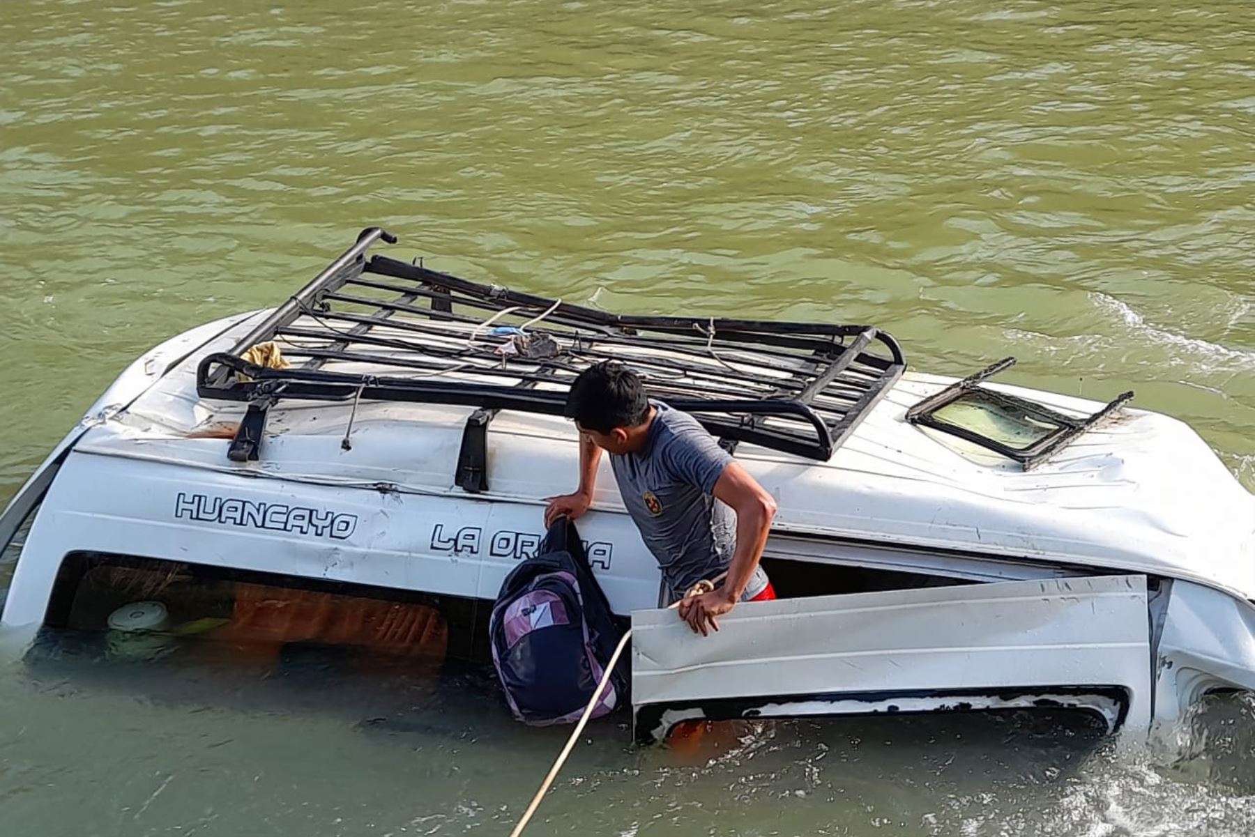 A la altura del km. 62.800 de la Carretera Central en el sector Mal Paso, la minivan de placa ACF 284 que iba conduciendo Víctor Suasnabar Blas, de Huancayo a Lima con nueve personas a bordo, se despistó cayendo al río Mantaro.