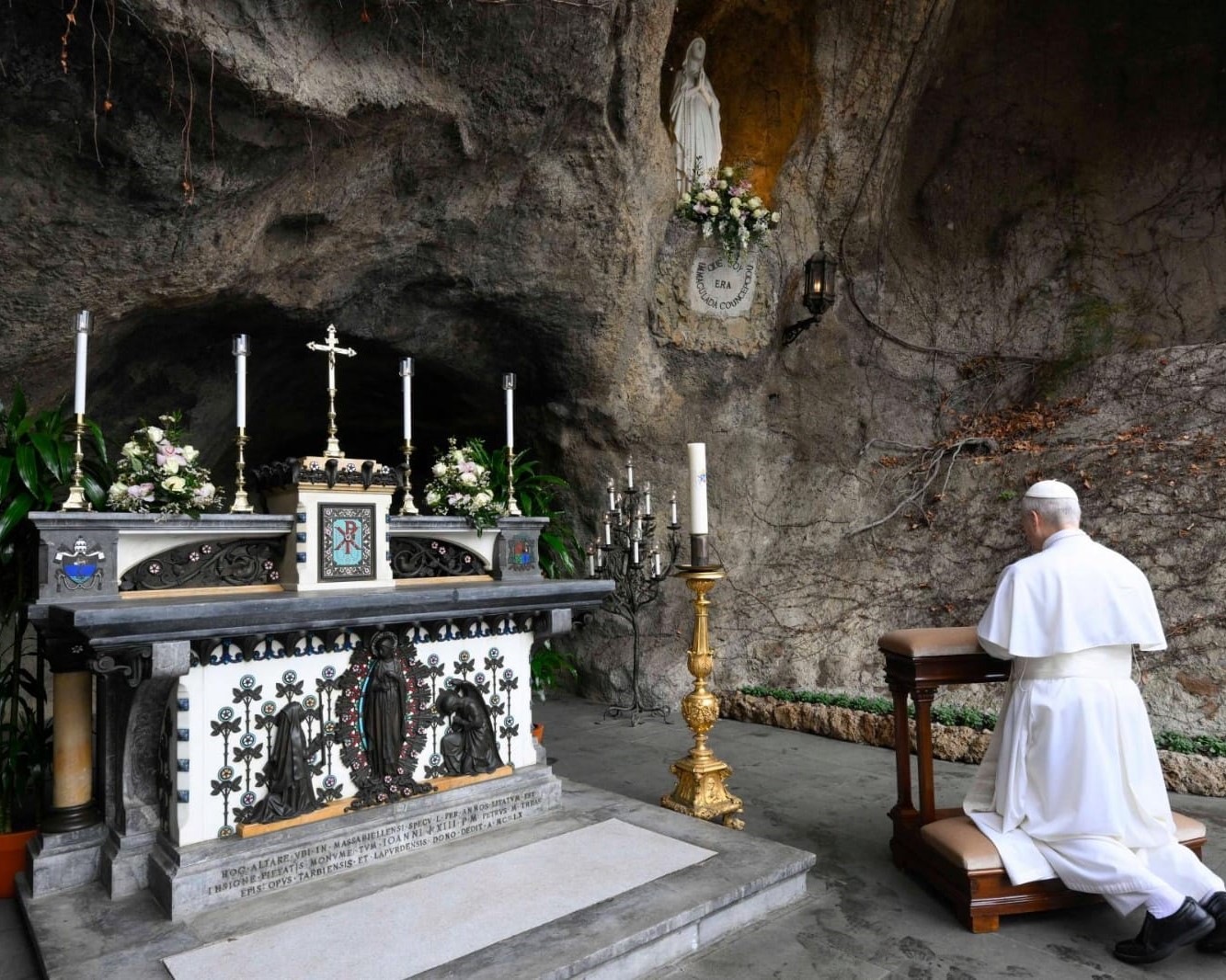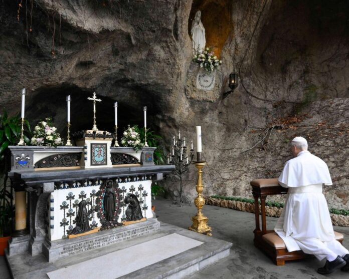 Al finalizar la Audiencia, el Pontífice se dirigió a la Gruta de la Santísima Virgen María de Lourdes, en los Jardines Vaticanos, y encendió una vela, “signo de mi oración por todos los enfermos, a quienes recordamos con especial afecto hoy, Jornada Mundial del Enfermo”.