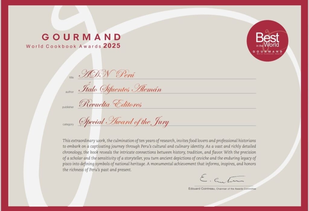 El libro ADN Perú ganó el Premio Especial del Jurado durante los Gourmand Awards, entrega de premios que este año, del 27 al 30 de noviembre, se llevó a cabo en la turística ciudad de Riad, Arabia Saudita. De este modo, el Perú cierra el 2025 obteniendo el preciado galardón del único concurso internacional dedicado a publicaciones sobre culturas gastronómicas y de bebidas.
