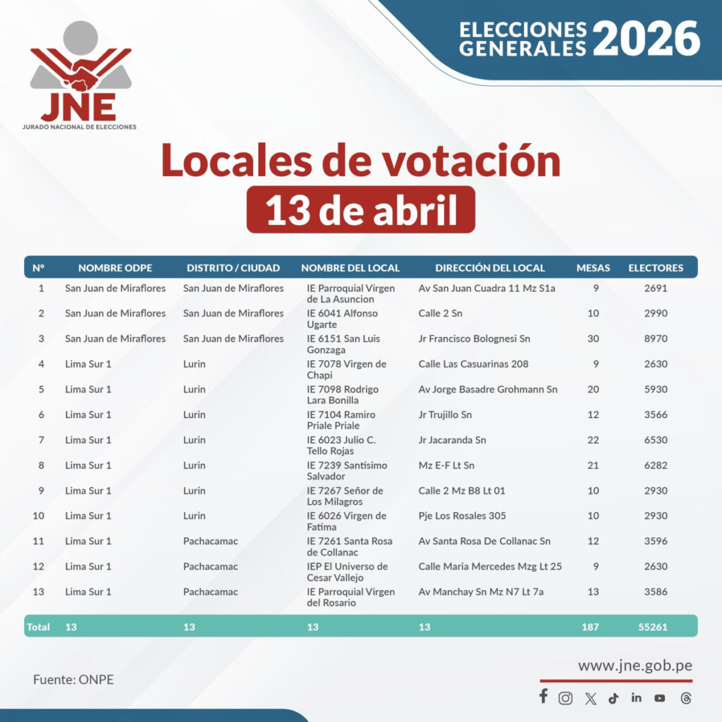 Ahora el nuevo flash electoral de lpsos para las Elecciones Generales 2026 se tiene programado para el día de hoy 13 de abril a las 6 p.m., tras los inconvenientes por la falta de instalación de mesas de sufragio en varios locales de votación. En este caso el Jurado Nacional de Elecciones (JNE), invocó a los ciudadanos, que se dirijan a sus respectivos centros de votación y de esa manera ejercer su voto, para los que no pudieron realizarlo el día de ayer, también se hará en dos ciudades de Estados Unidos en donde no llegaron los miembros de mesa.