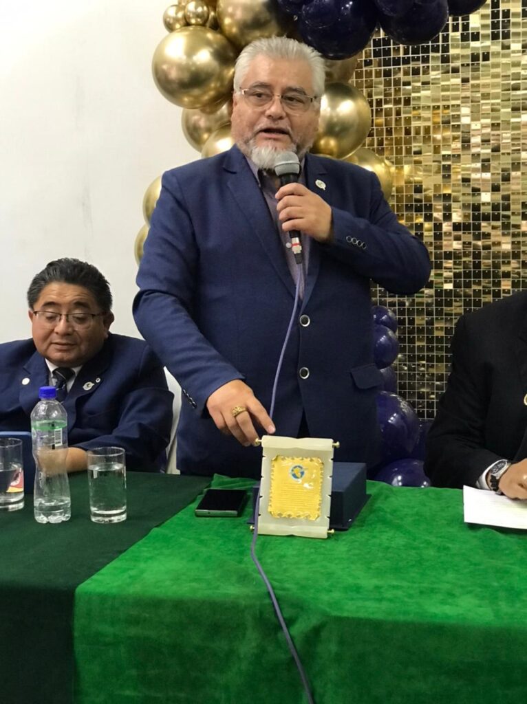 Ángel Sánchez Dueñas, presidente de la Federación de Periodistas del Perú (FPP), expresa su agradecimiento tras recibir un reconocimiento por parte de la directiva del sindicato OSIFUT