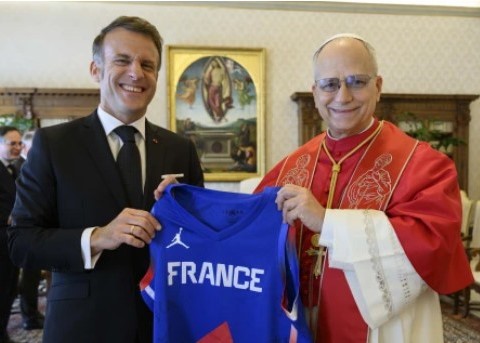 En el tradicional intercambio de obsequios, el presidente Macron regaló a León XIV una camiseta de la selección francesa de baloncesto con la firma de los jugadores, un libro sobre la reconstrucción de la catedral Notre Dame de París tras el incendio de 2019 y un mapa de la zona del Misisipi realizada por misioneros franceses en 1617.