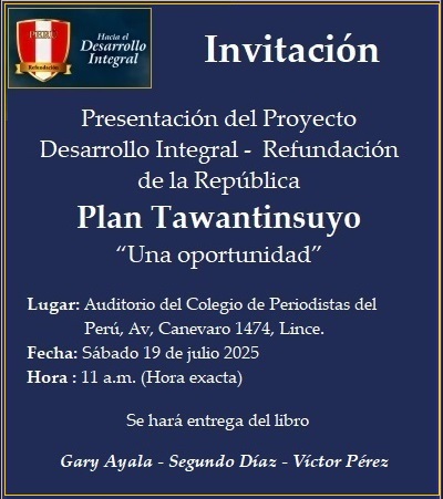 En una coyuntura marcada por el desencanto ciudadano y el agotamiento del modelo republicano, la aparición del “Proyecto Desarrollo Integral y Refundación – Plan Tawantinsuyo”, elaborado por el comunicador y académico Gary Ayala Ochoa, representa un ejercicio serio de propuesta nacional. Lejos de fórmulas políticas convencionales, se trata de una visión estructurada con proyecciones macroeconómicas y fases estratégicas que colocan al Perú frente a su propia encrucijada: continuar en la deriva o reconstruirse con propósito.