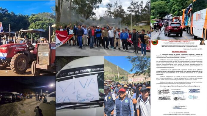 Al amanecer del Lunes 06 de octubre, miles de integrantes de las rondas campesinas, urbanas e indígenas iniciaron un paro regional indefinido en Cajamarca, bloqueando al menos seis tramos viales considerados estratégicos. La medida fue convocada por la Federación Regional de Rondas Campesinas en coordinación con frentes sociales y autoridades locales, como respuesta al abandono de obras prometidas por el Ministerio de Transportes y Comunicaciones (MTC), el incremento de la delincuencia rural y la expansión de la minería ilegal.