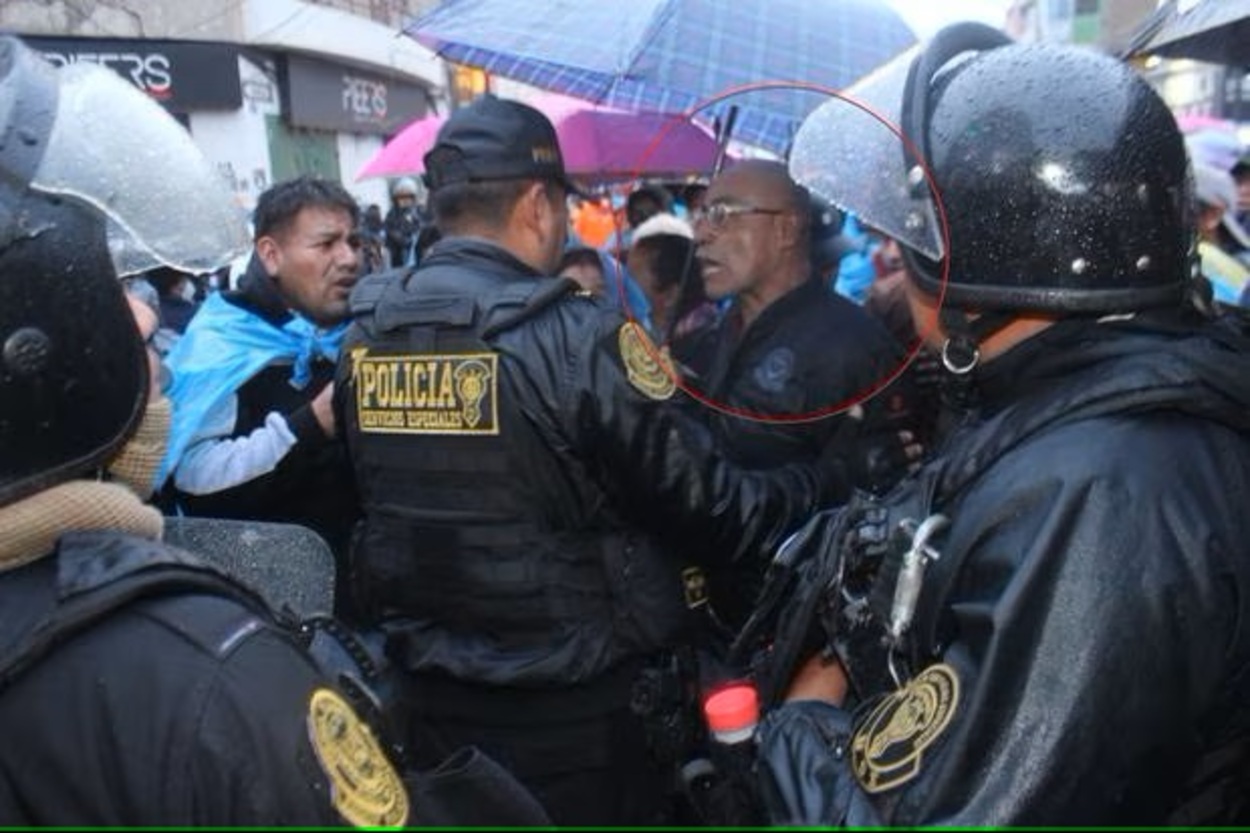 Además, en la última movilización este personaje se camufló entre docentes del Sutep tratando de pasar desapercibido, pero fue descubierto por los agentes del orden.