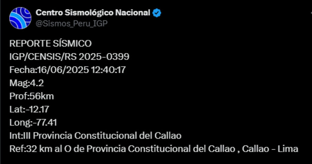 Durante la mañana del domingo 15 de junio y la madrugada del lunes 16, el centro del país fue escenario de una serie de movimientos sísmicos que generaron preocupación en la ciudadanía. El Instituto Geofísico del Perú (IGP) informó que el evento principal se registró a las 11:35 a. m. del domingo y alcanzó una magnitud de 6.1 grados en la escala de Richter. El epicentro se ubicó a 114 kilómetros al suroeste de la Provincia Constitucional del Callao, con una profundidad de 25 kilómetros.
