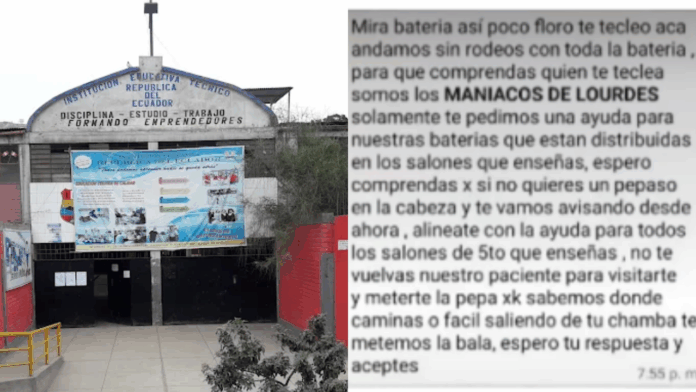 Dos estudiantes del quinto de secundaria del colegio República del Ecuador fueron intervenidos por extorsionar a sus maestros amenazándolos de muerte. Utilizaban videos con armas de fuego y mensajes intimidatorios, los adolescentes buscaban forzar su promoción escolar ante el inminente cierre del año académico.